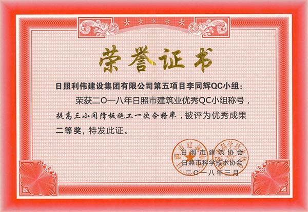 2018年李同辉QC小组优秀成果二等奖