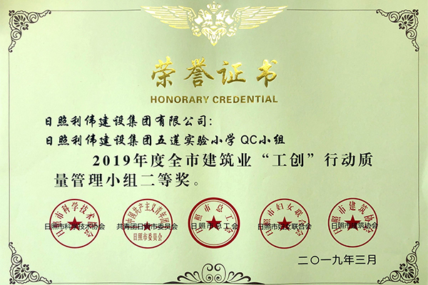 全市建筑业“工创”行动质量管理小组二等奖
