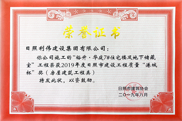 日照市建设工程质量“港城杯”奖