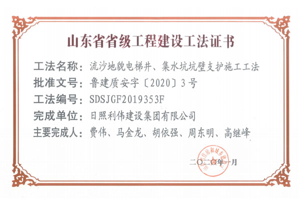 2020年工法证书