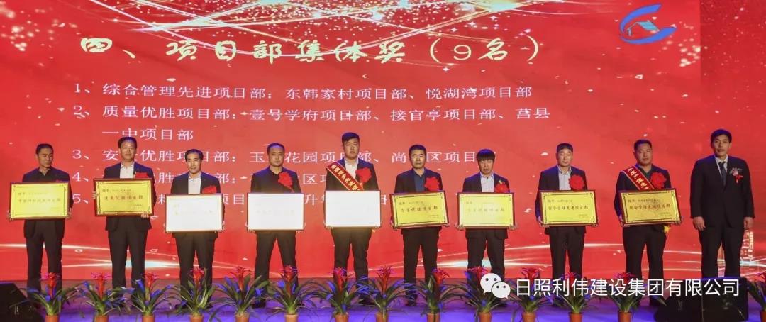总结表彰会上,集团办公室、东韩家村项目部等4个部室、9个项目部获得先进集体荣誉称号;李同辉和费帅等2名项目经理获得生产特别奖荣誉称号;朱恒辉等8名同志获得优秀技术负责人荣誉称号、李秀娟等7名同志获得优秀保管员荣誉称号;李涛等31名同志获得集团先进个人荣誉称号。